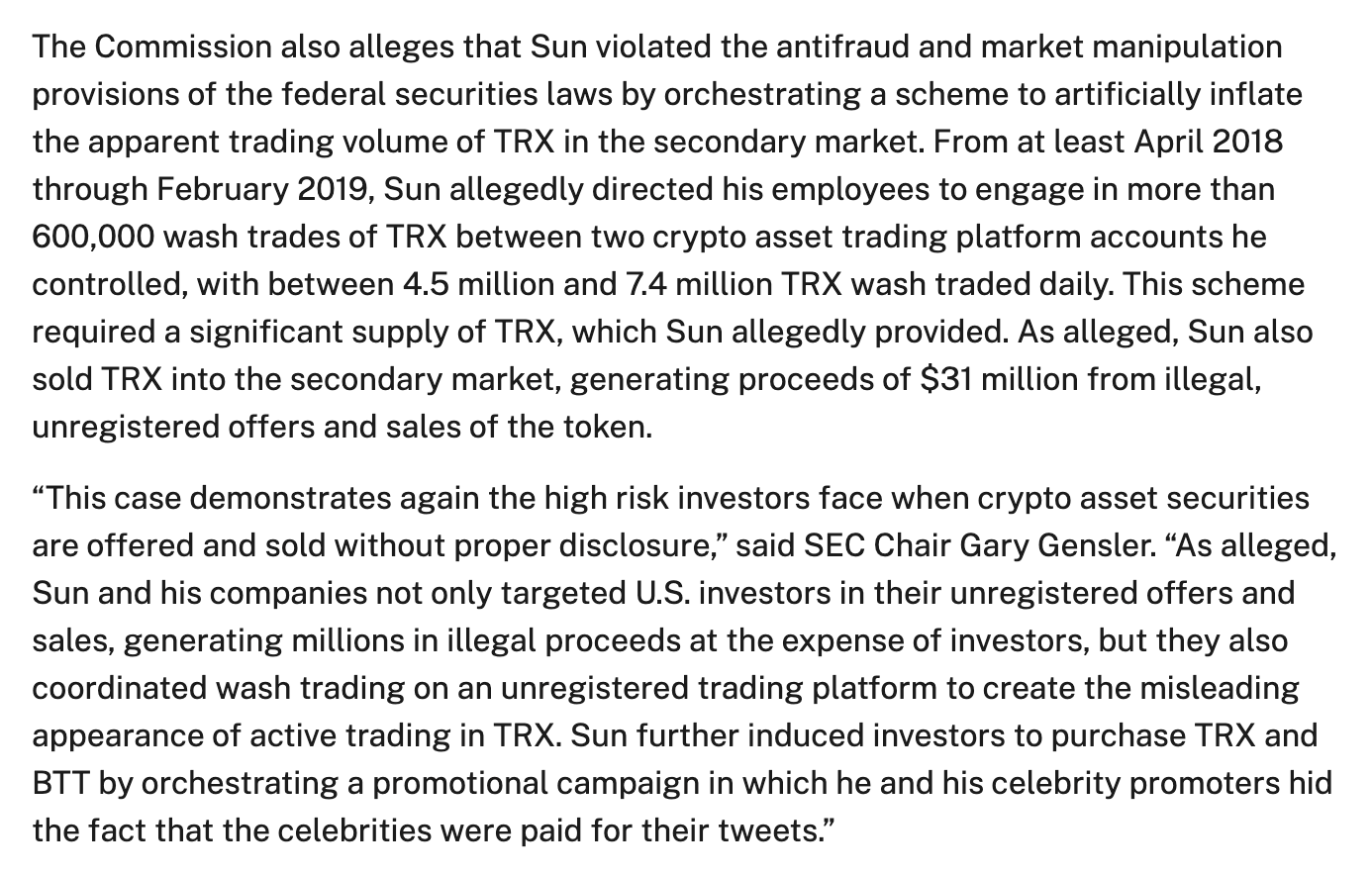Chair Atkins has suggested that the crypto cases his agency has dropped were merely over "registration issues" that were "red herrings" from the Biden admin. But the complaint against Sun also alleged serious fraud.