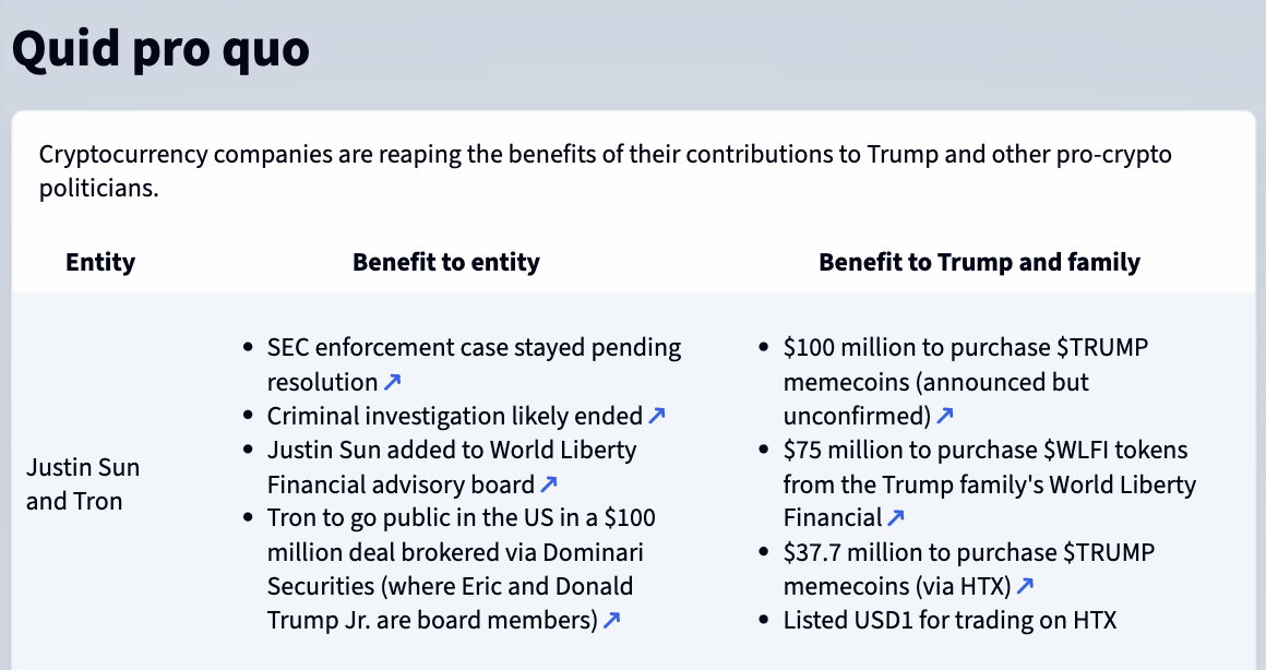 Sun has spent between $112 million and $233 million on contributions to Trump-linked crypto firms.